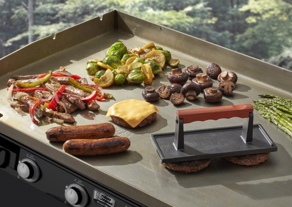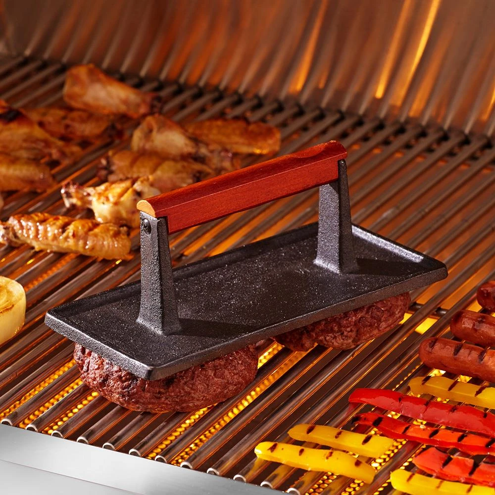 Curling and unevenly cooked meat is a thing of the past with the cast iron meat press. Made of high quality cast iron, your meat press is durable and perfect for both grills and griddles alike. Regardless of what you’re cooking it will keep your meat flat on the grill grates or griddle top for even heating and flawless taste.