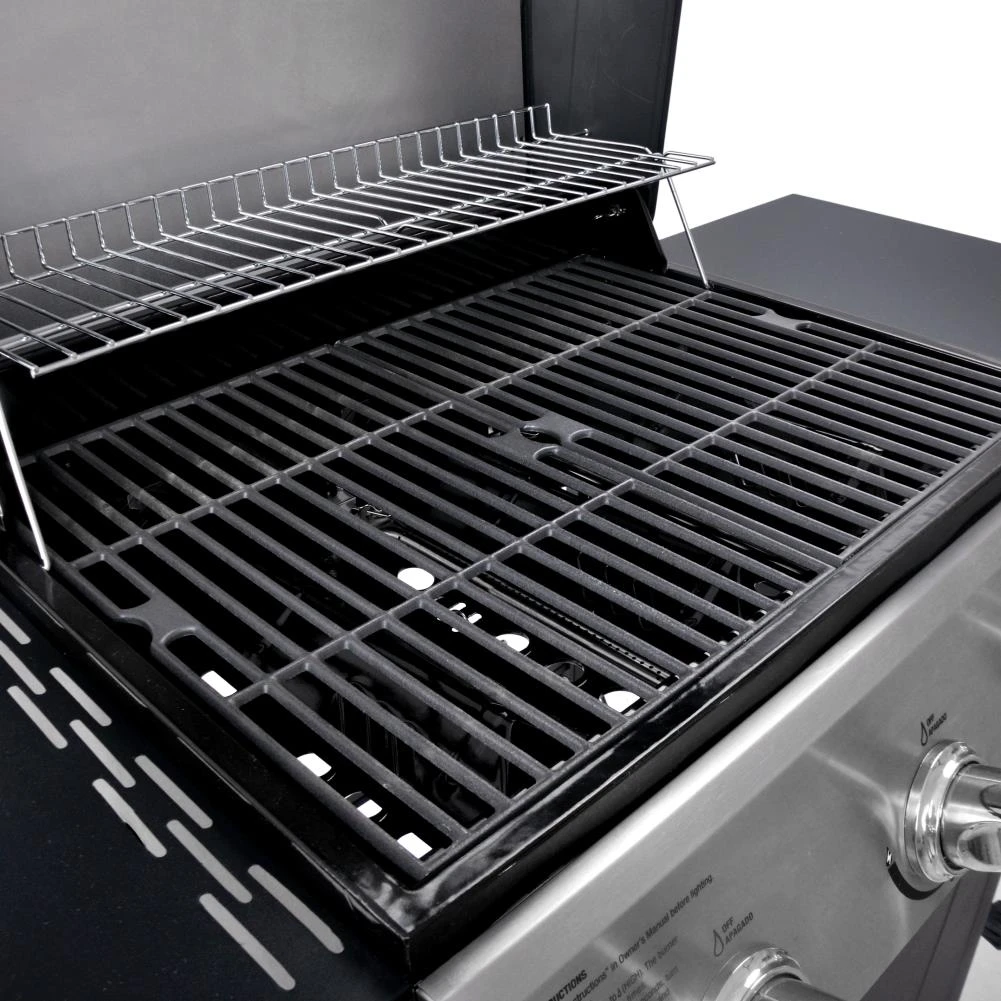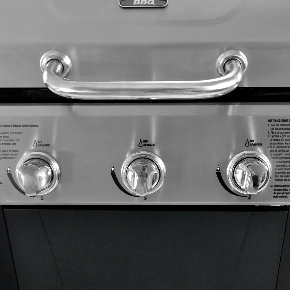 - 27000-BTU stainless steel burners with easy push and turn ignition