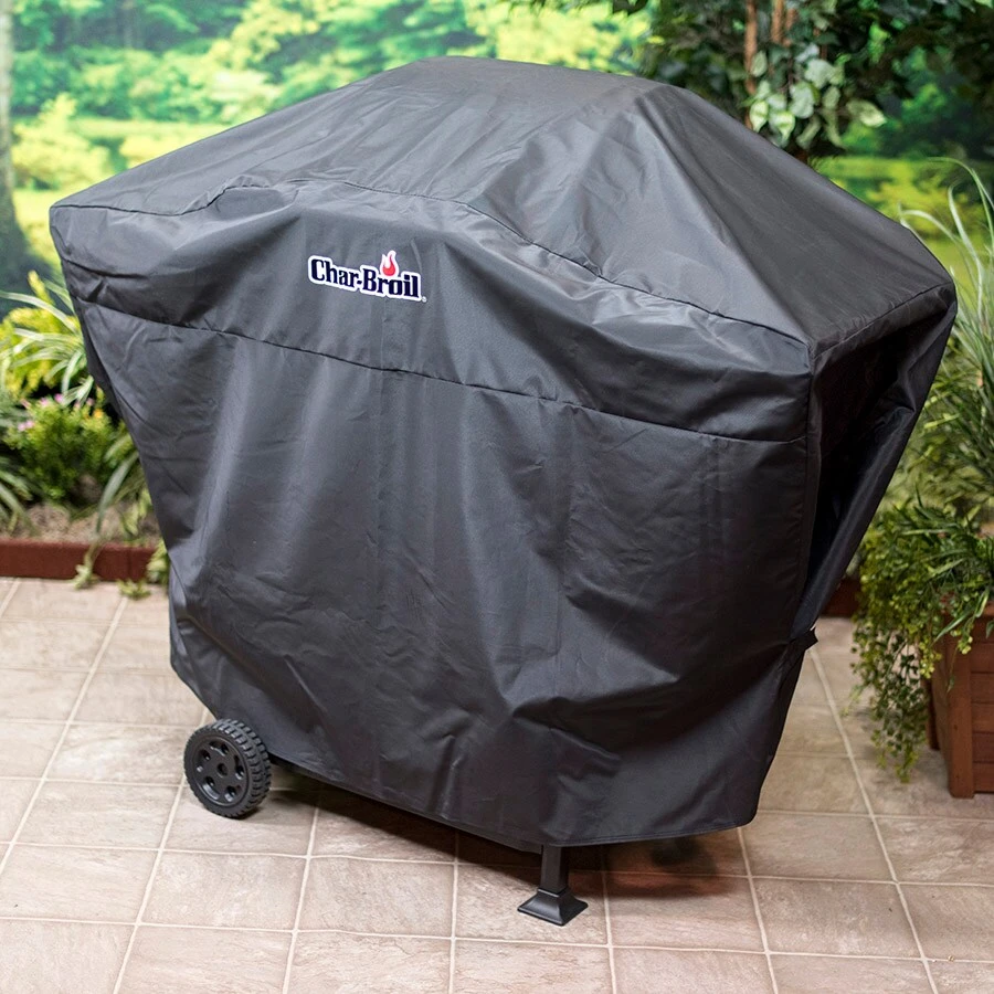 Keeping your grill covered has never been easier. With this functional grill cover, your 2-3 burner Char-Broil grill can stay safe from harsh weather conditions year-round. The heavy vinyl material withstands rips and the convenient side straps keep the cover securely fastened.