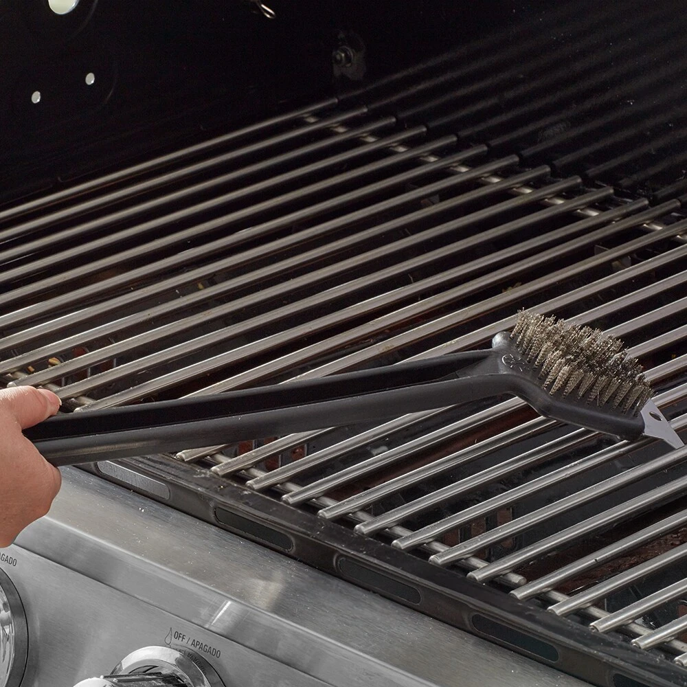 Sometimes, you just gotta scrape it off. This 18 Inch grill brush features a long handle with durable stainless steel bristles and scraper for cleaning the messiest grills. The long handle makes for an easy grip so you won’t have to struggle getting those grids clean.