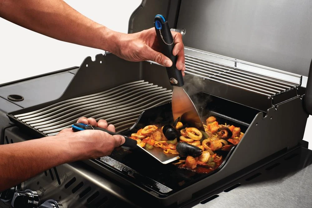 Try European style grilling with this Two-Piece Plancha Toolset, ideal for use with the Napoleon Cast Iron Plancha. The oversized spatula easily handles all types of food while the scraper provides safe and easy cleanup. Durable stainless steel construction with ergonomic handles means years of comfortable use.
