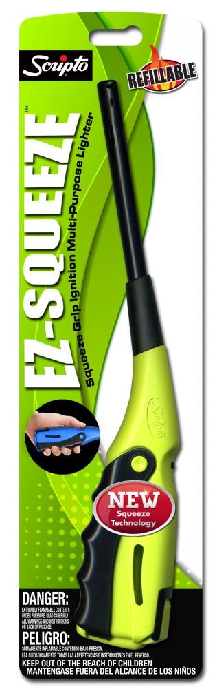 The easy squeeze lighter features an adult friendly squeeze mechanism that is child resistant. This lighter can be refilled.