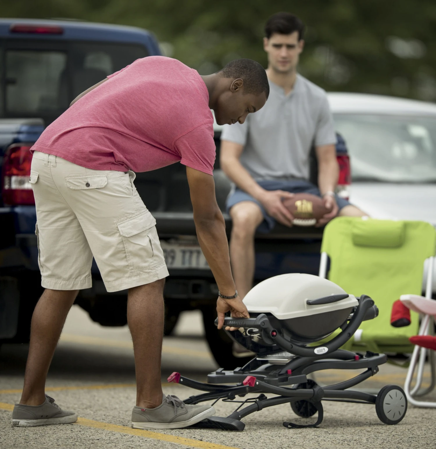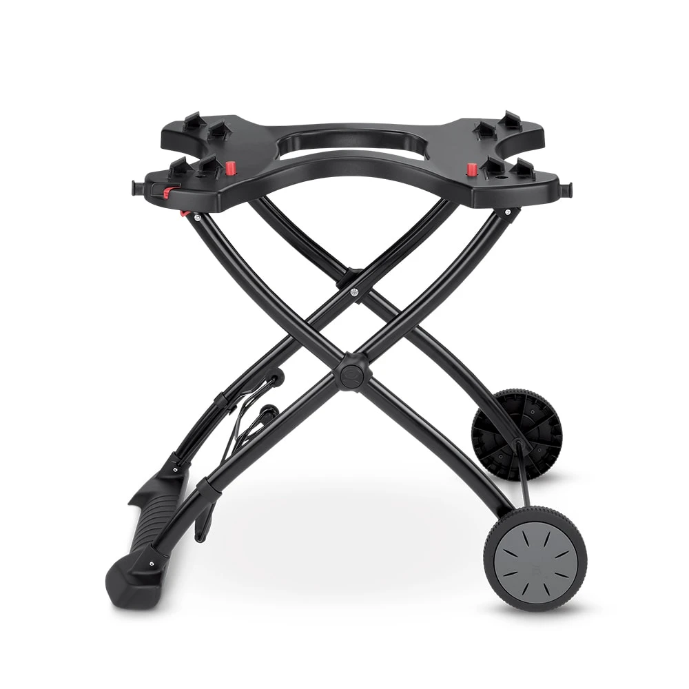 Grilling on-the-go is made even more convenient with the Weber Q portable cart. Use it to transport your 2014 Weber Q 1000/2000 series grills. It features a push button, allowing you to quickly fold and unfold the cart with your grill securely in place.