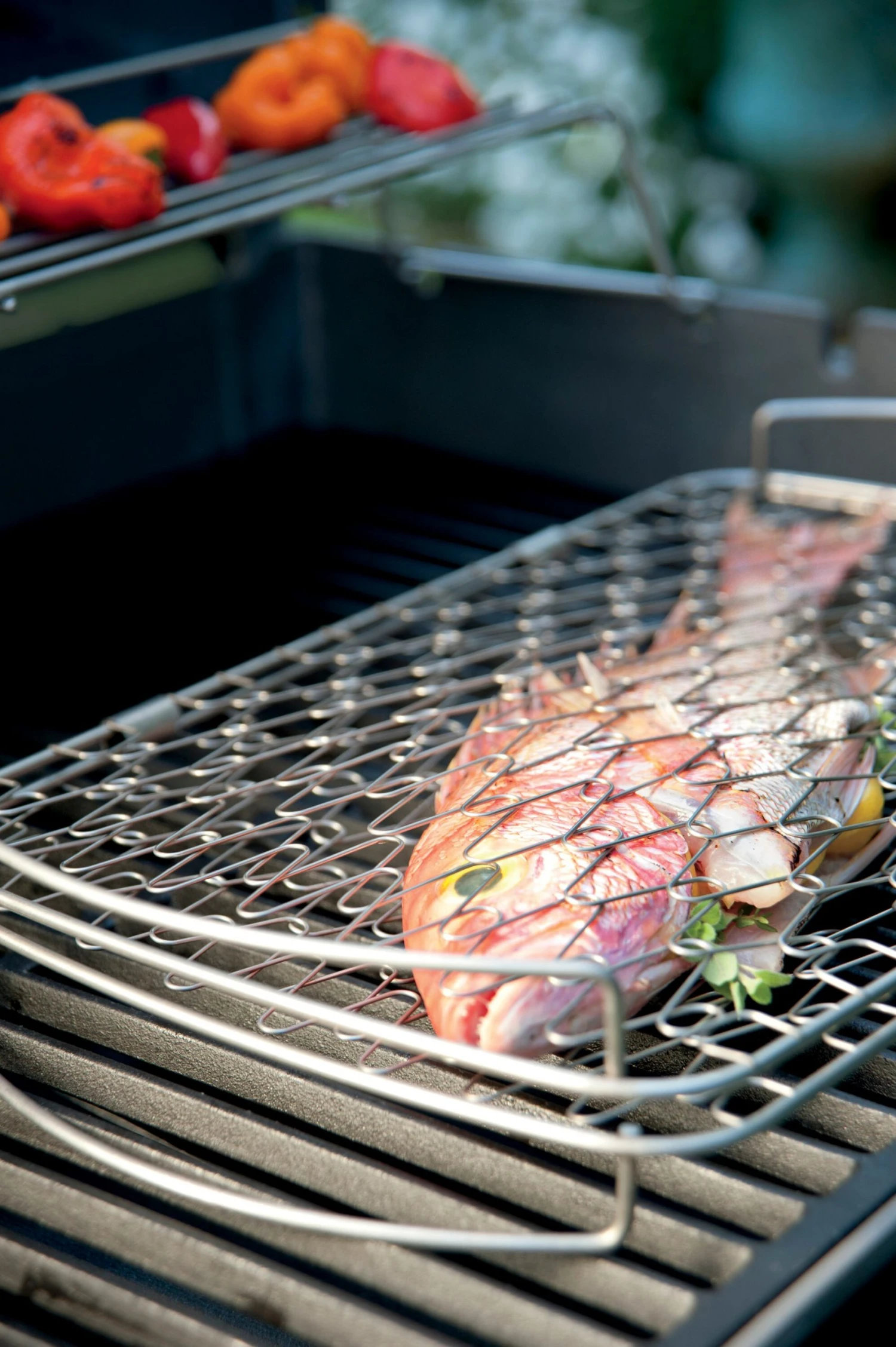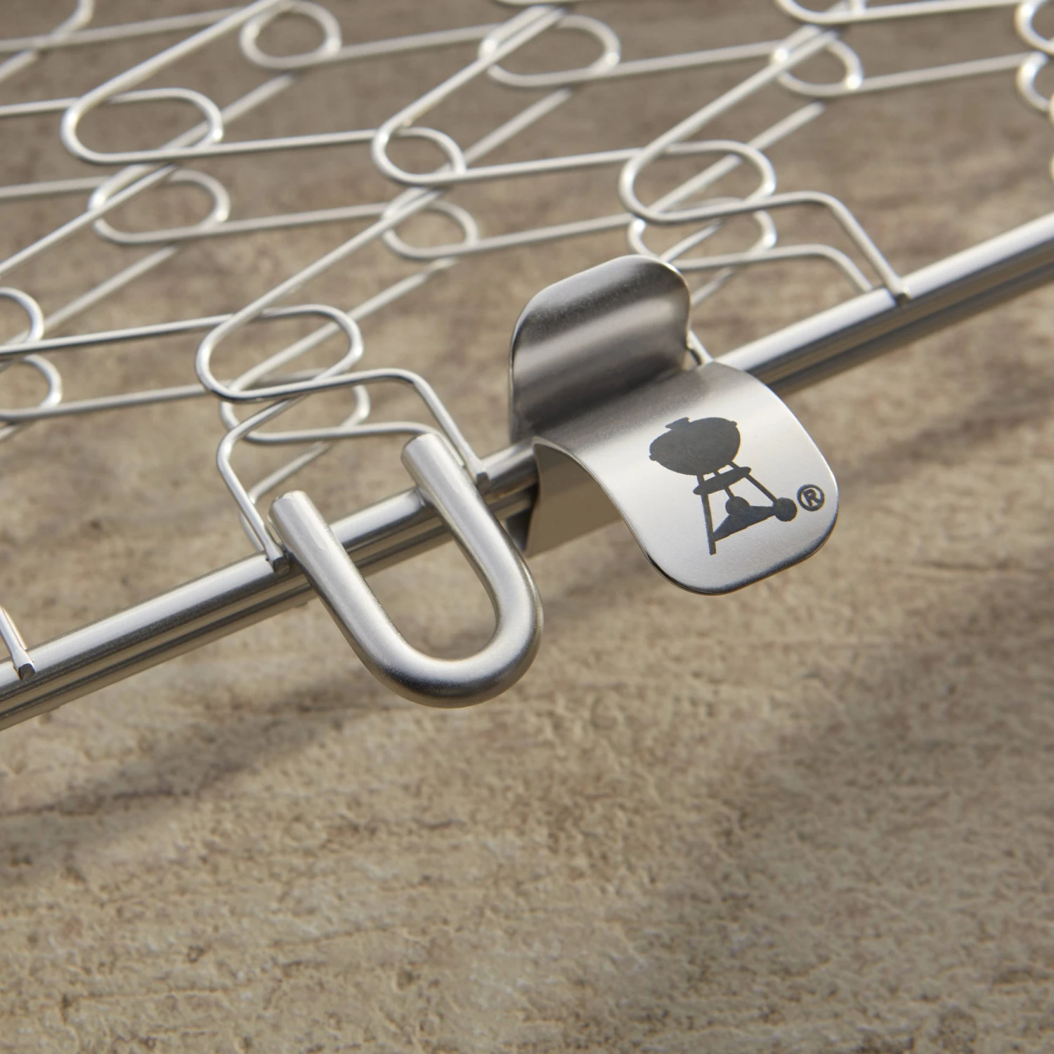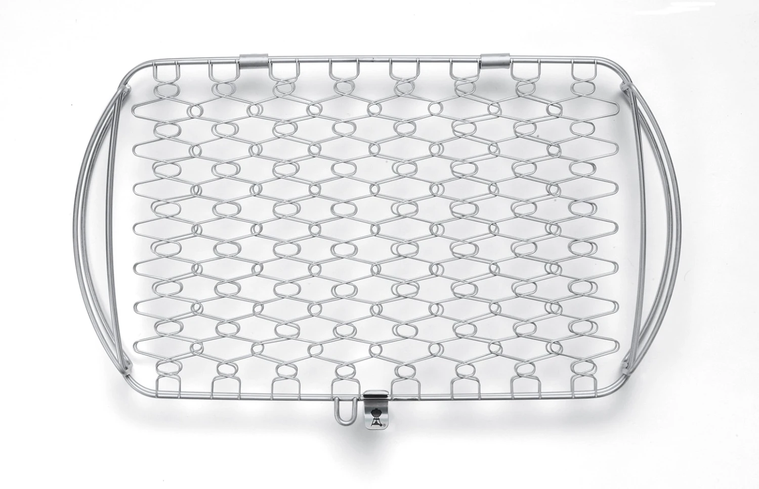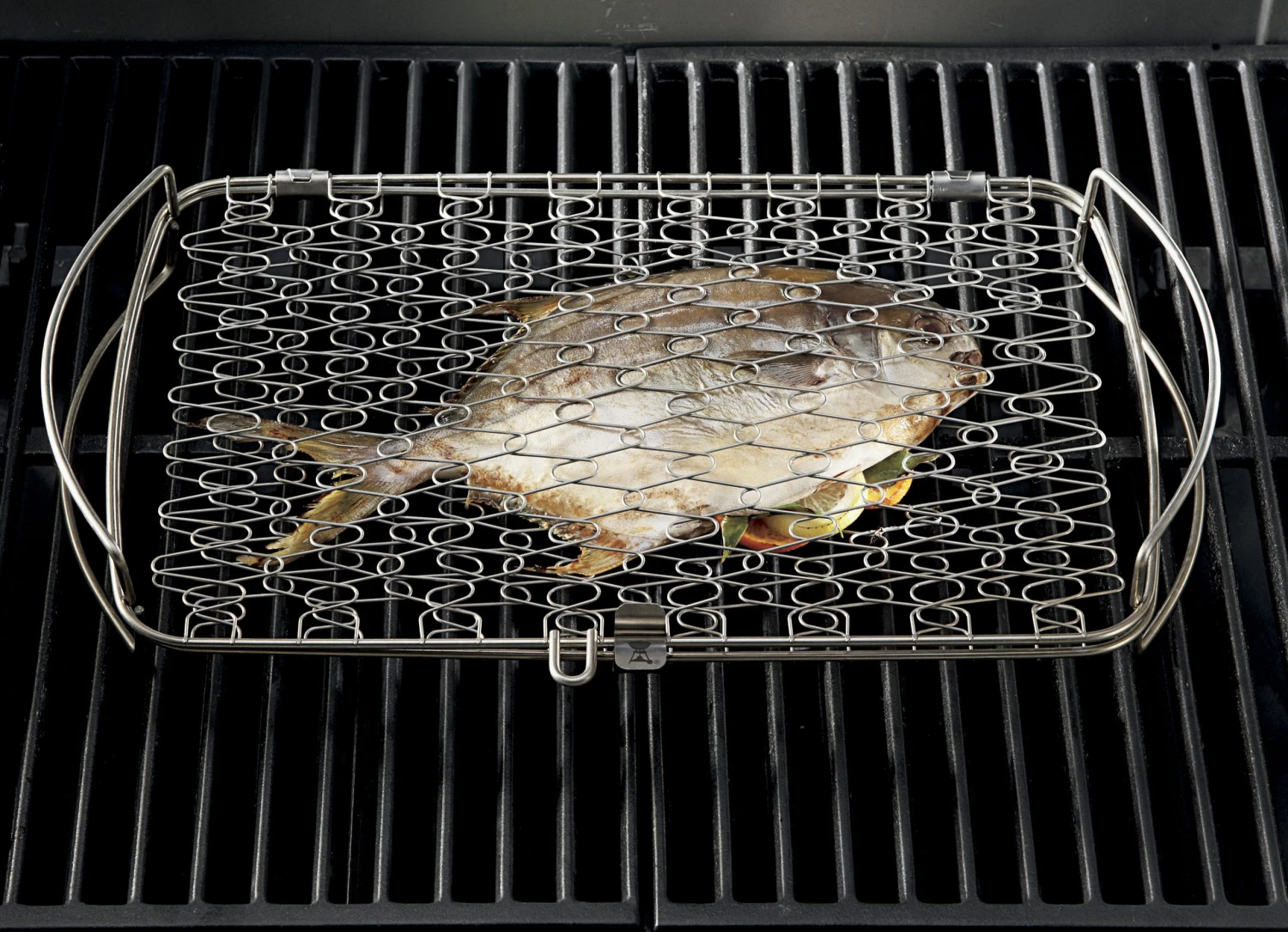 The Weber grilling basket is ideal for handling delicate whole fish or fillets. You don’t have to worry about them falling apart on your grill grates anymore. This basket features a flexible wire design that adjusts to fit a variety of fish shapes and sizes and it closes securely. You can also use it to grill other delicate meats, vegetables and fruits.